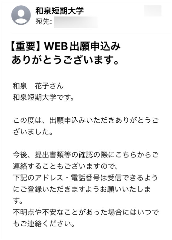 登録したメールアドレス宛に「【重要】WEB出願確認のご連絡」メールが送信されます。![]() |