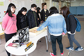松が丘園(障がい者支援施設)では天然酵母の手作りパンを製造し販売しております。その商品を月に1回、和泉に持ってきてくださり、学生と松が丘園の利用者さんと協力して販売を行っております。とても美味しいパンなので学生も教職員も販売の日を楽しみにしております。