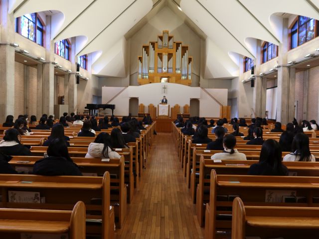「開講式チャペルアワー」として、礼拝形式で開講式を行った後、「つながる準備」として、入学前教育の目的、入学前までに取り組む課題の説明等を行い、最後に「仲間づくり・大学での学びのつながり」としてレクリエーションを行いました。