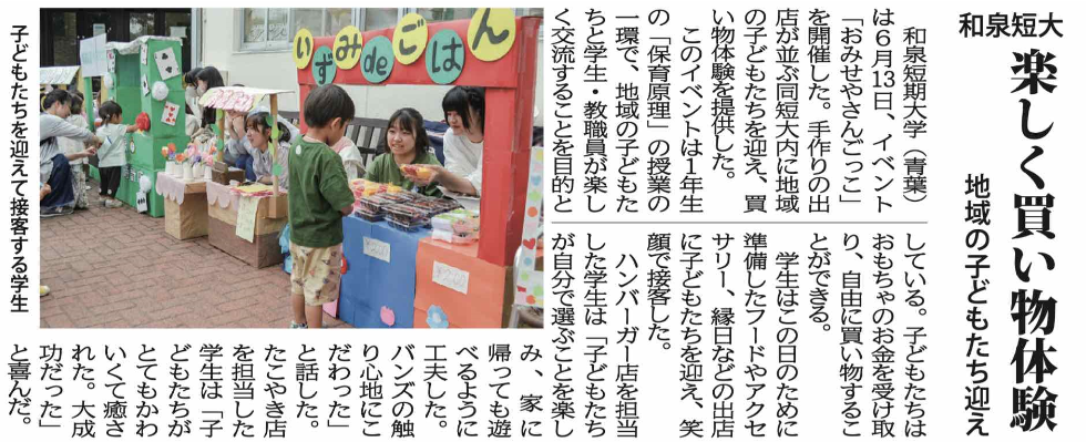 6 月 13 日(木)に本学で開催されたイベント「おみせやさんごっこ」の記事が「タウンニュース 6 月 27 日号」に掲載されました。