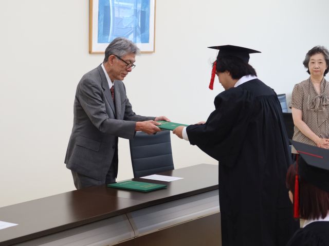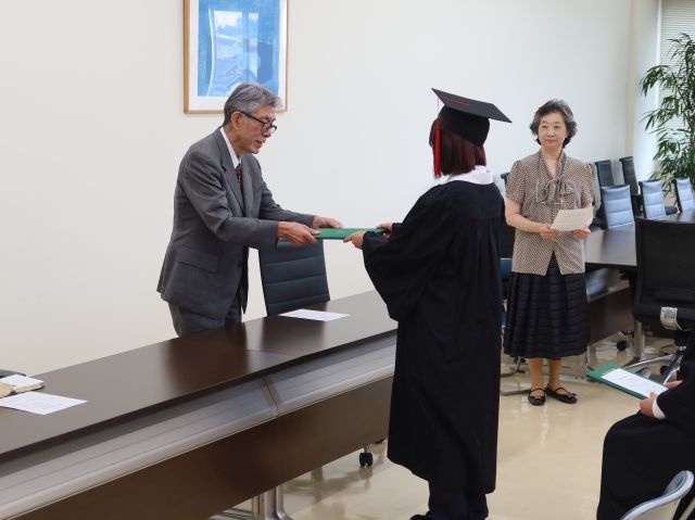 2025年9月29日(月)大会議室において、2025年度秋季卒業式を執り行いました。 卒業証書・学位記授与式では、卒業証書・学位記が授与された後、佐藤守男学長より式辞が述べられ、新たな門出を祝いました。 ご卒業おめでとうございます! [記事公開日]2025年10月01日