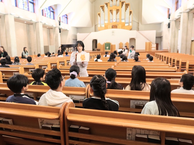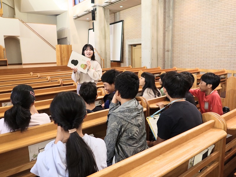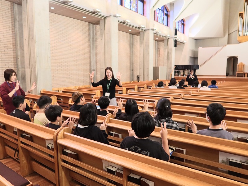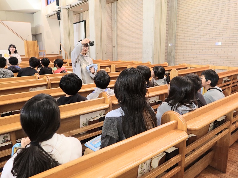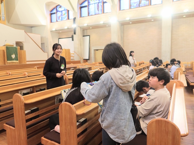 サプライズのパイプオルガンウェルカム演奏から始まり、5 つのグループに分かれて、それぞれ出会いのアイスブレイクを行った後、学生から自分の将来の夢を決めるきっかけ、夢に対する悩み、今学んでいることなどをお話し、児童からも活発な質疑応答があり、一つひとつ丁寧にお応えしました。