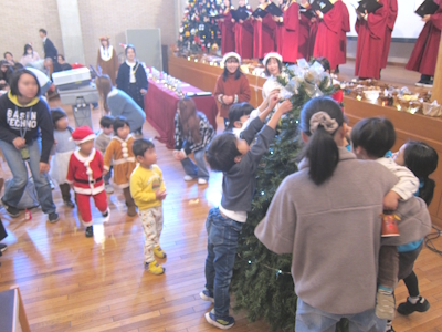 12月6日(土)9時30分から、本年度第10回目の子育てひろば「はっぴい」を開催します。今回のテーマは「クリスマスコンサート」です。10時30分から和泉クラーク・ホールにて学生聖歌隊によるクリスマスソング、ハンドベルやパイプオルガンの演奏のほか、学生によるクリスマスの絵本の読み聞かせと出し物を行います。ホールでのクリスマスコンサートの間、キャリアデザインセンターに残って遊んでいただくこともできます。