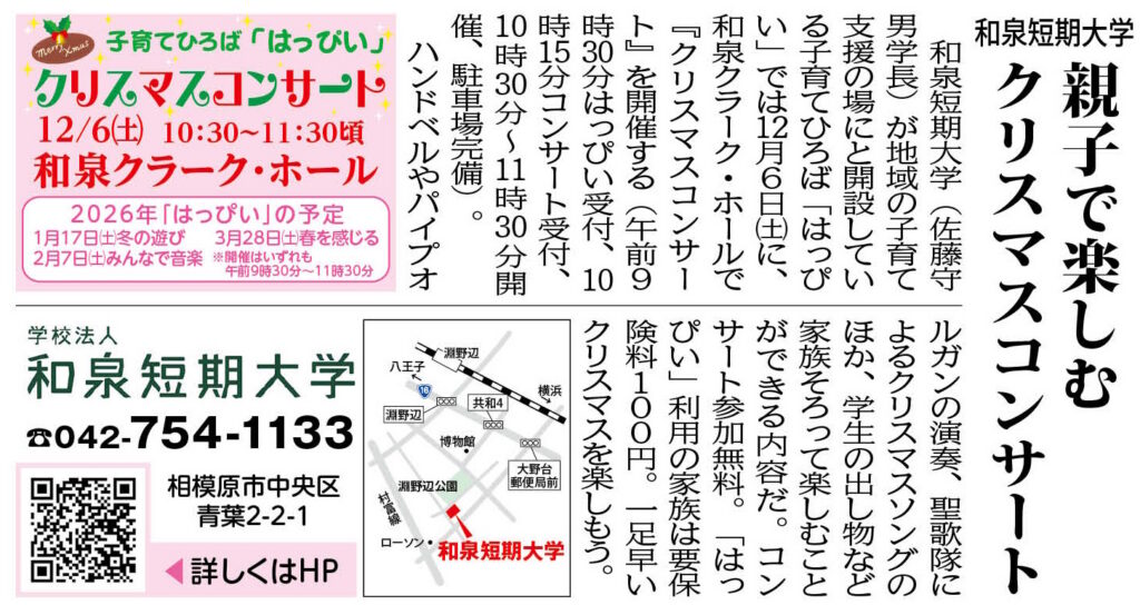 ◆ タウンニュース さがみはら中央区版 ホームページ和泉短期大学 親子で楽しむクリスマスコンサート
