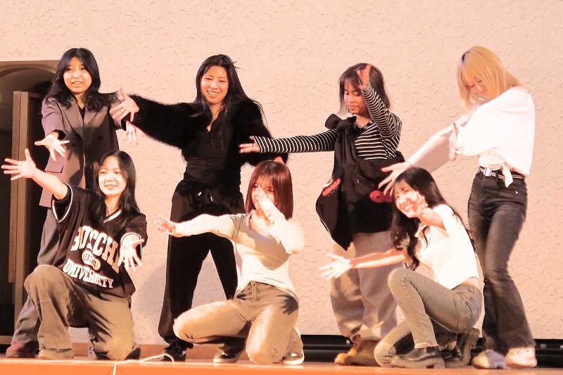 和泉短大にまつわるさまざまな質問が出題された「いずみクイズ」、いずみ祭でも活躍した個人ダンスユニット「Sunflower」、個人ダンスグループ「いず娘」のダンス発表、ダンスサークルの発表、そして抽選会を実施しました。