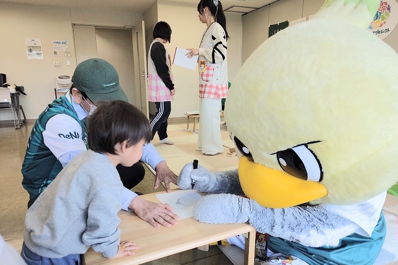 保護者の方からは、「 4 月から 1 年生になる為、3 月も全部行きたいと思っています。先生やお姉さん達と楽しい思い出を作って欲しいです。」「カバンとリボンを作ったのが楽しかったみたいです。ガミティと写真を撮ったのも喜んでいました。これからも利用したいと思います!」と、感想をいただきました。