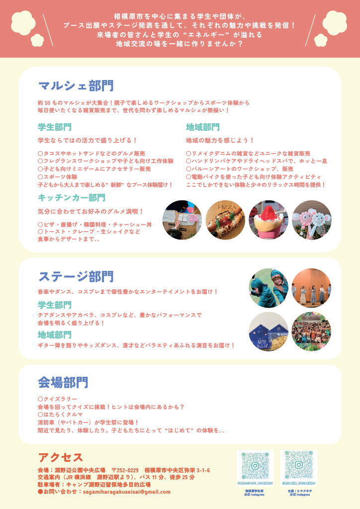 3 月 8 日(日)10 時 ~ 16 時に淵野辺公園中央広場で開催される「さがみはら学生祭」に和泉短期大学生が参加します。