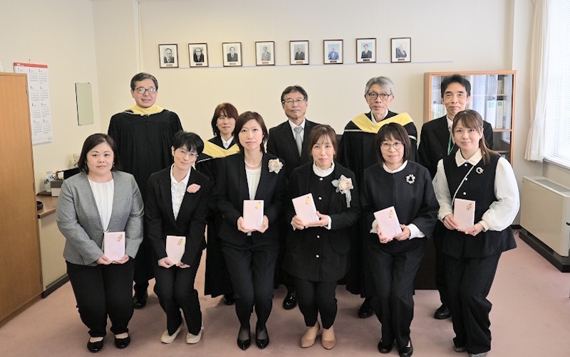 2026 年 3 月 10 日(火) 理事長室において、2 年間父母会役員としてご尽力いただいた 2 年生の父母会役員 6 名の皆様に、佐藤学長が感謝の意をお伝えし、記念品 渡辺和子著「置かれた場所で咲きなさい」を贈呈しました。