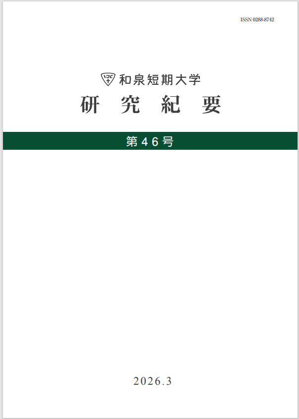 [記事公開日]2026年03月30日和泉短期大学 研究紀要 第46号を こちらのページに PDF 版を公開しました。研究紀要 第43号から電子版を参照することができます。43号には以前の論文タイトルの一覧が掲載されています。紙の冊子版については図書館でご覧いただけます。