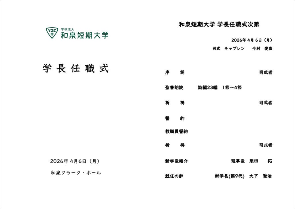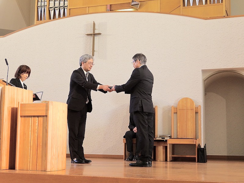 4 月 6 日(月)11 時 45 分から、和泉クラーク・ホールにおいて、大下聖治第 9 代学長の任職式がイースター礼拝内で行われ、理事・評議員・教職員・学生が出席しました。