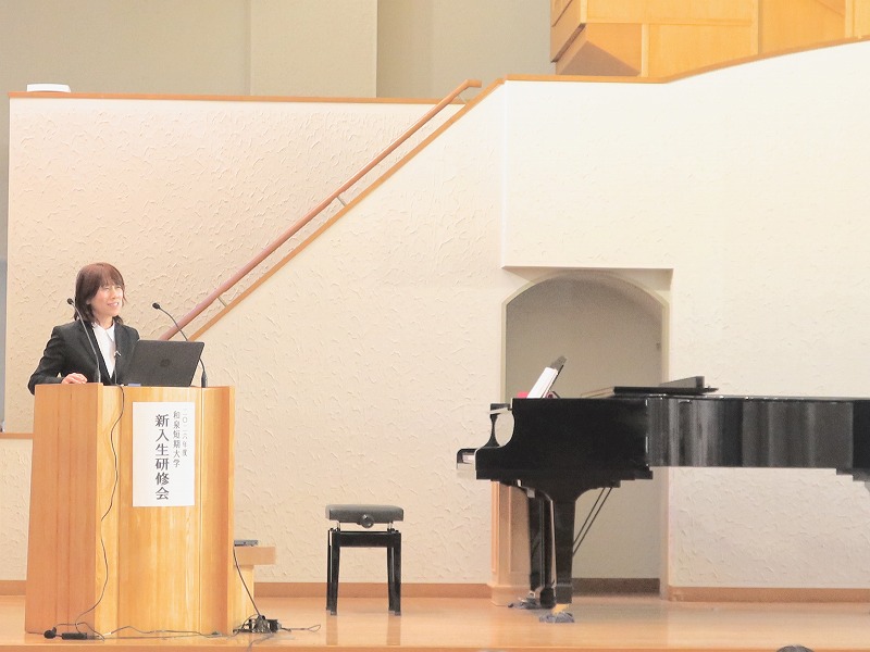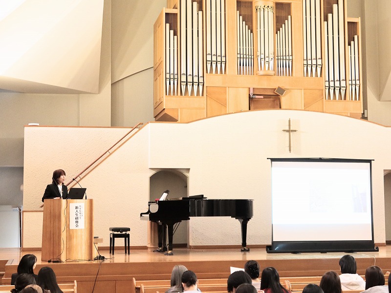 第一部の宗教部オリエンテーションでは、今村チャプレンより和泉短期大学の歴史とキリスト教と保育・福祉の結びつきについてお話されました。新入生にとって、和泉の歴史を知る良い機会になりました。